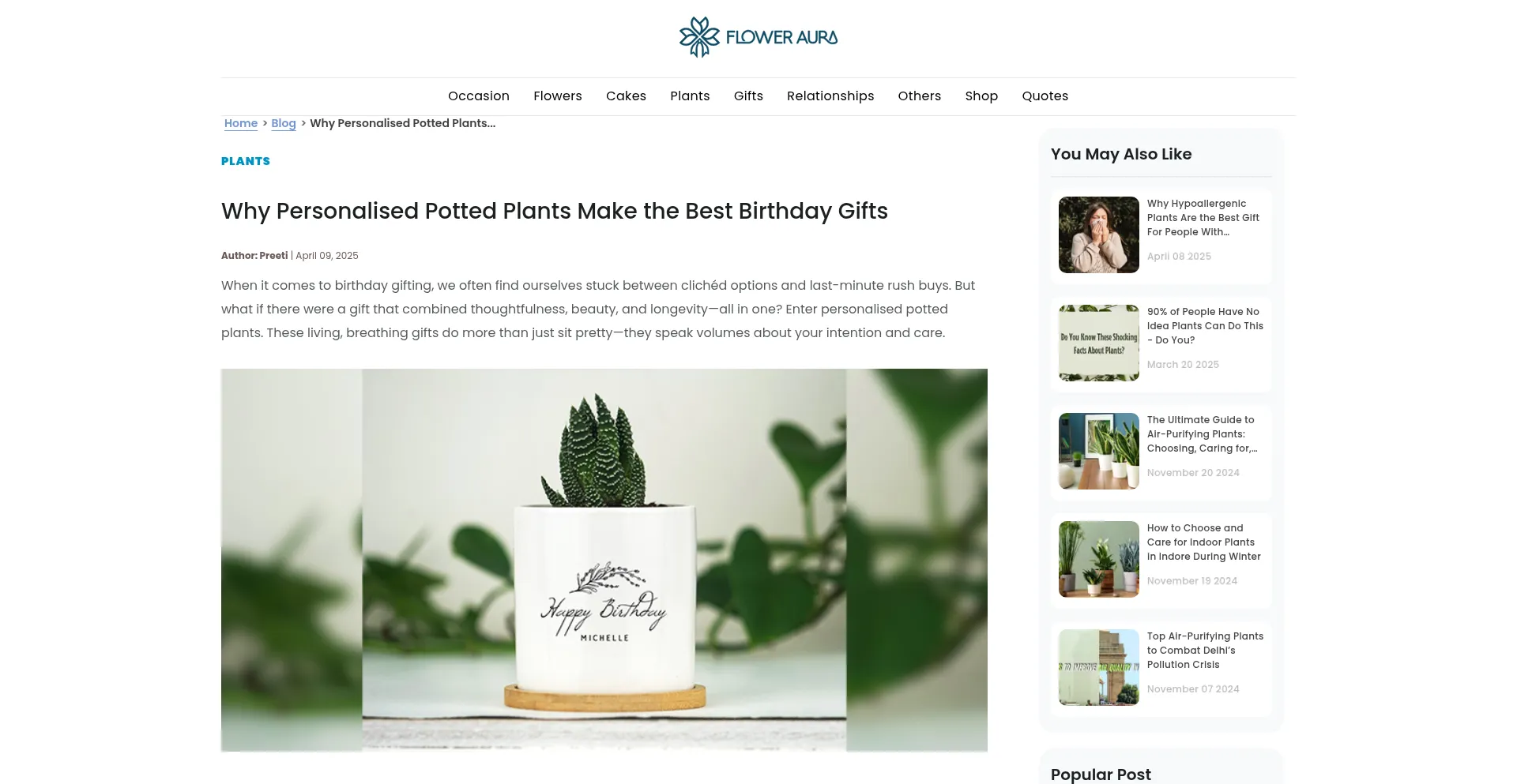 Discover why personalised potted plants are the perfect birthday gifts. Add a personal touch with green charm and make birthdays more meaningful with FlowerAura.