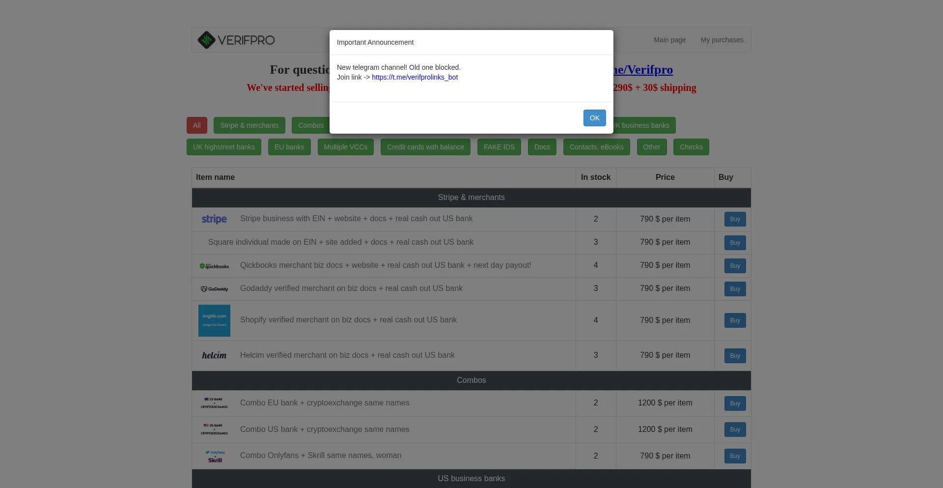 The Verifpro.net service makes it possible to buy a bank account of the United States or the European Union, e-mails, telephone numbers of any country, and much more.