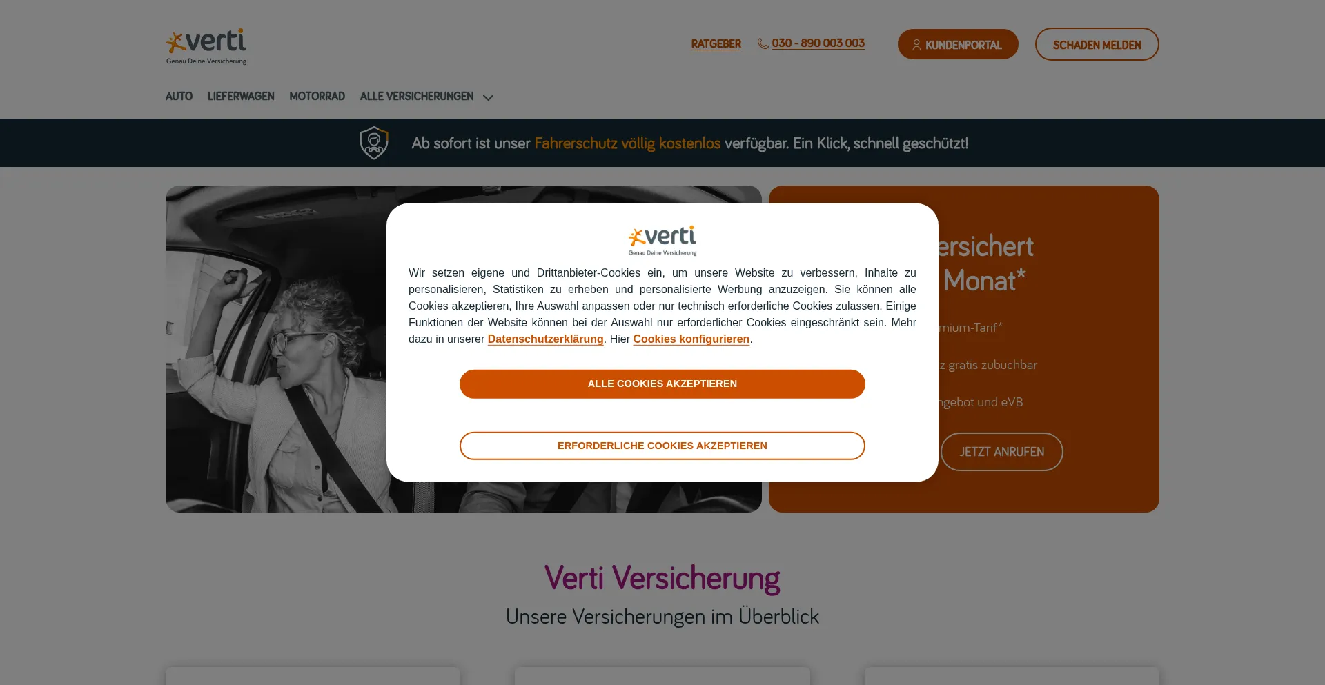 The website implements cookie consent mechanisms in compliance with privacy regulations such as GDPR or CCPA. This demonstrates that verti.de adheres to data protection standards and provides users with control over personal data collection practices.