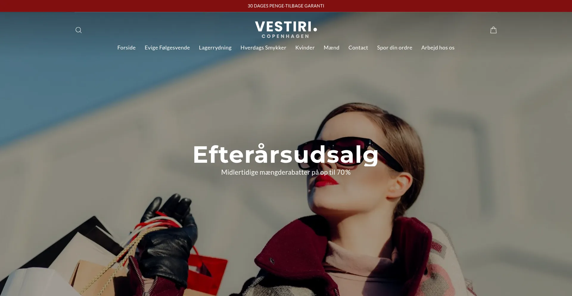 Analysis indicates that vestiri.dk operates as an e-commerce platform facilitating online transactions for goods or services. The website implements shopping cart functionality, payment processing systems, and product catalog features typical of commercial retail operations.