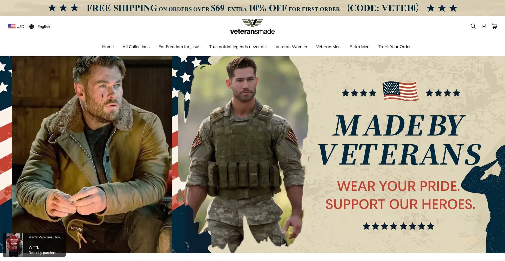 Veteransmade.com exhibits characteristics consistent with scam-like e-commerce operations. The site appears to accept payments while customer reports suggest data collection issues.