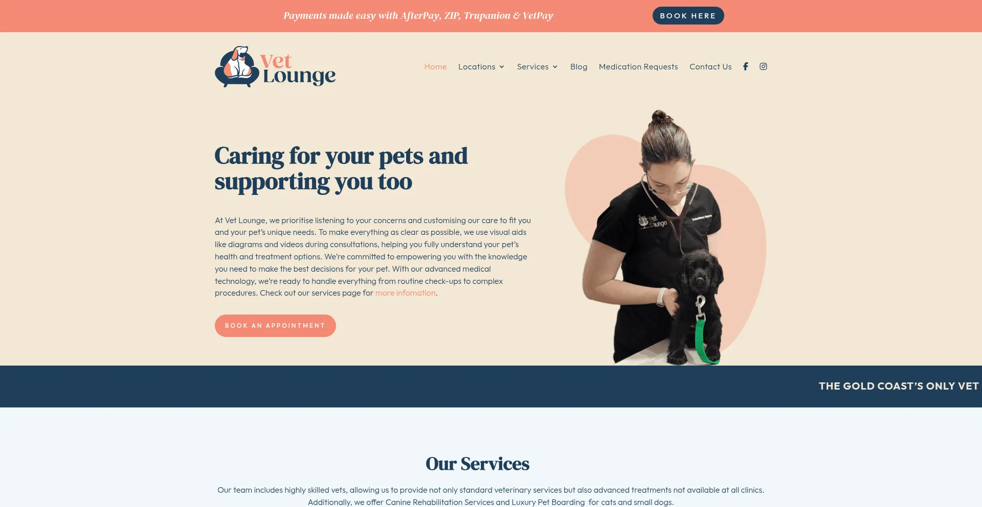 Vet Lounge: Quality Care For Your Furry Friends. Customising our care to fit you and your pet’s unique needs. To make everything as clear as possible