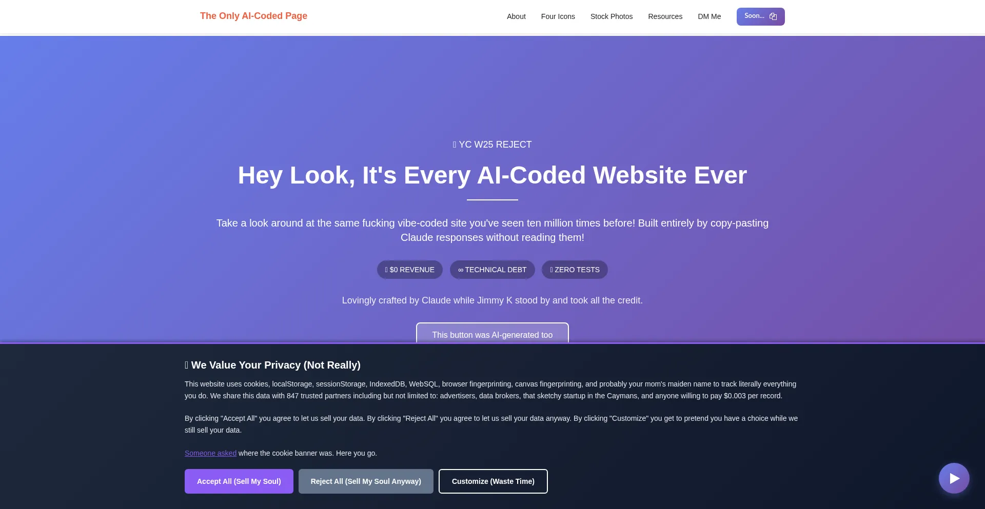 www.vibecodememe.com news.ycombinator.com claude.ai x.com vibecodememe.com github.com cdnjs.cloudflare.com ajax.googleapis.com picsum.photos images.unsplash.com +3 more