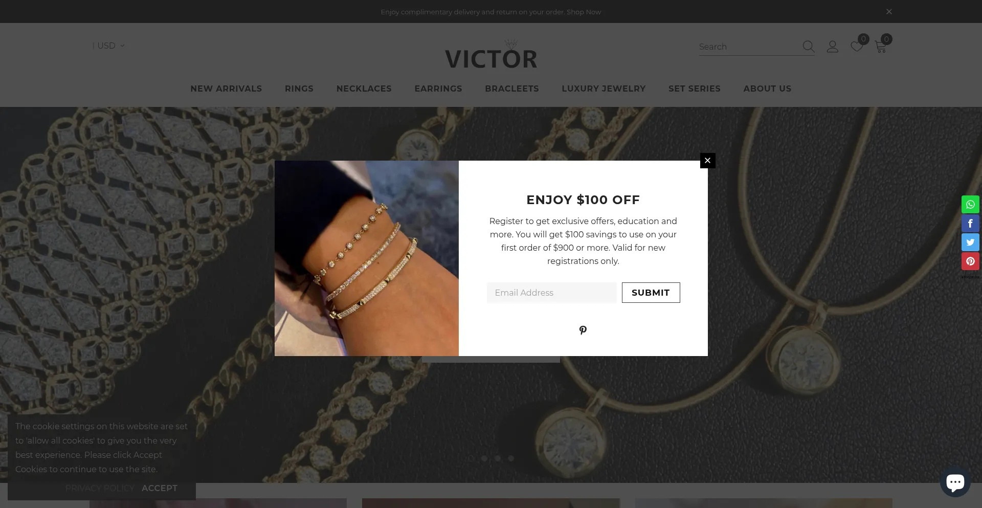The website implements cookie consent mechanisms in compliance with privacy regulations such as GDPR or CCPA. This demonstrates that victorfinejewelry.com adheres to data protection standards and provides users with control over personal data collection practices.