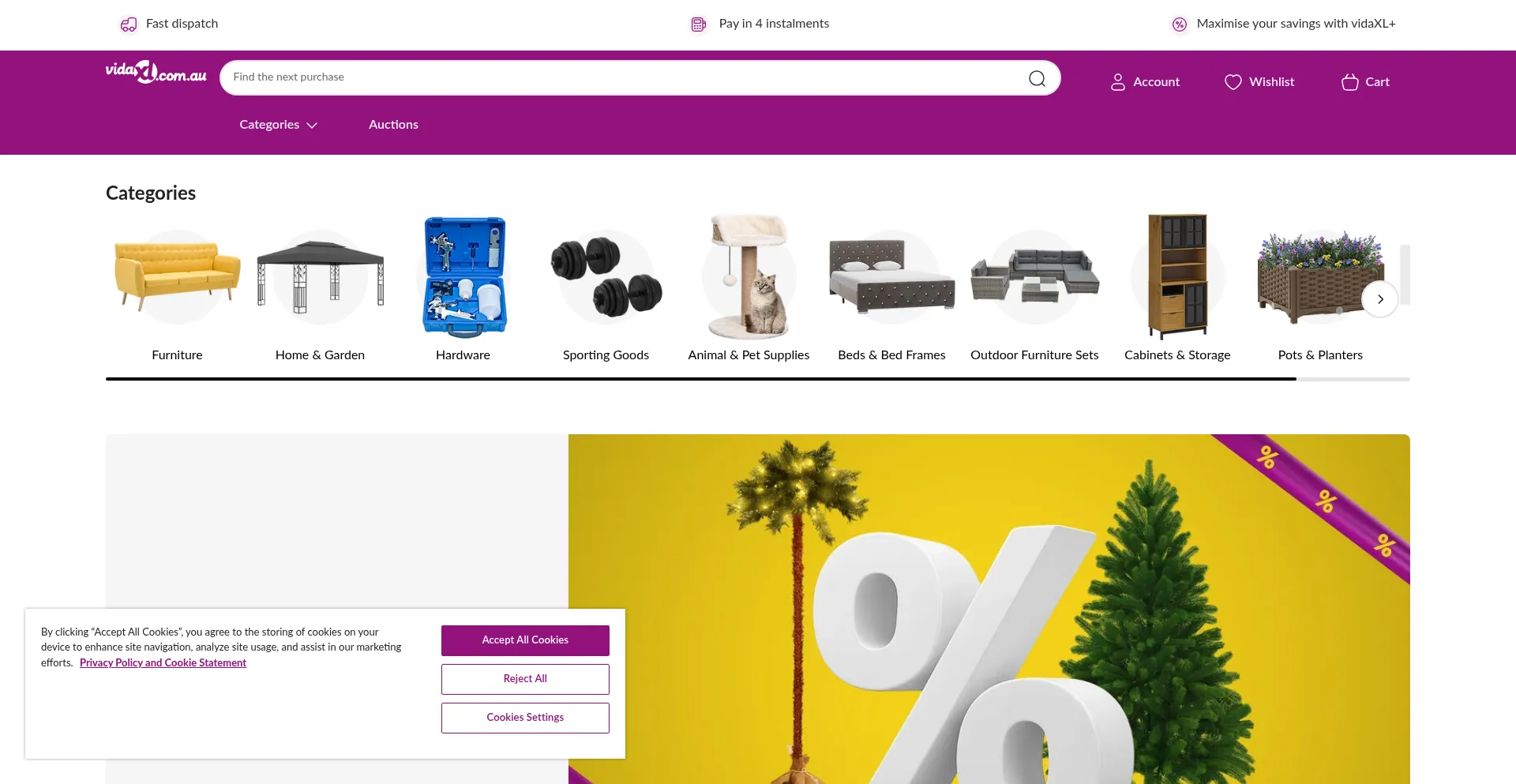 The website implements cookie consent mechanisms in compliance with privacy regulations such as GDPR or CCPA. This demonstrates that vidaxl.com.au adheres to data protection standards and provides users with control over personal data collection practices.