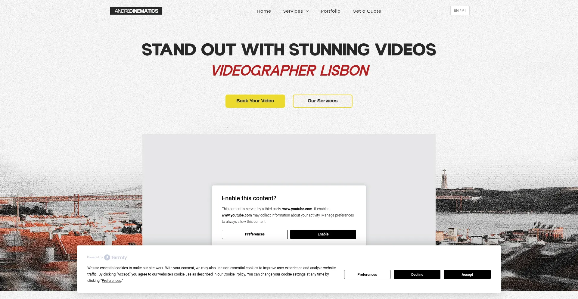 The website implements cookie consent mechanisms in compliance with privacy regulations such as GDPR or CCPA. This demonstrates that videographerlisbon.pt adheres to data protection standards and provides users with control over personal data collection practices.