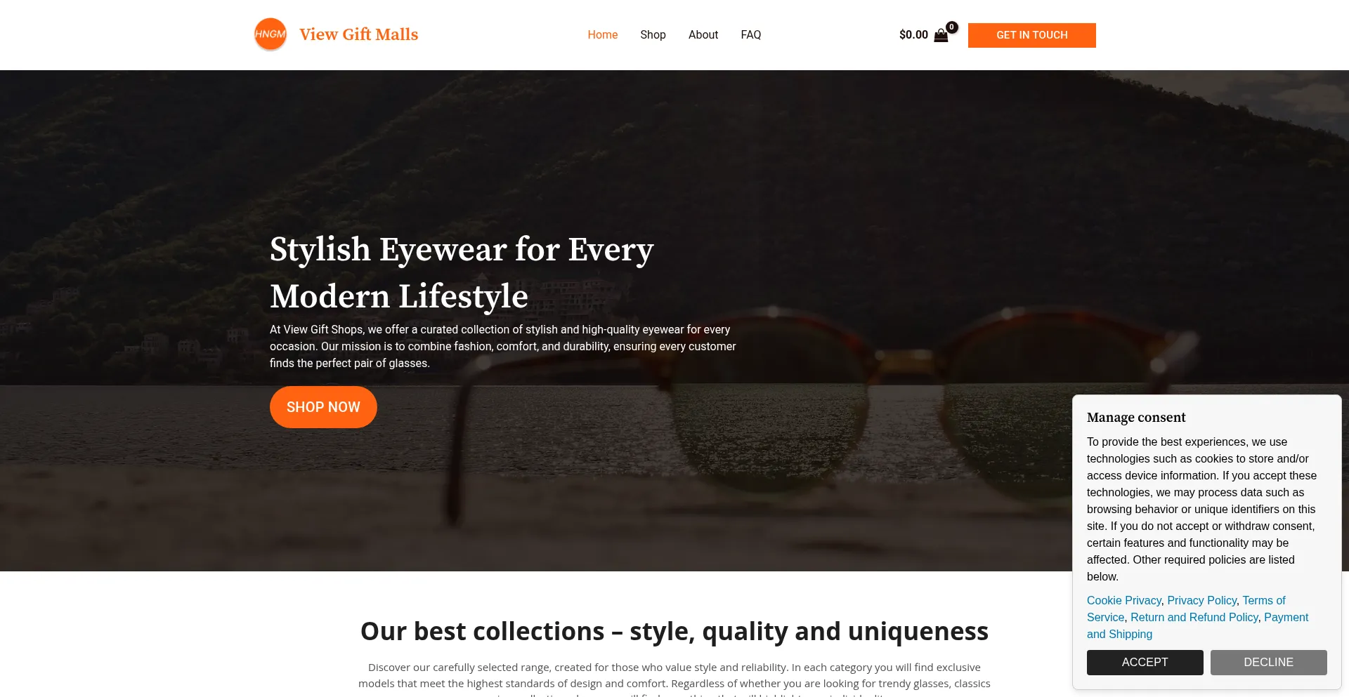 Analysis indicates that viewgiftmall.com operates as an e-commerce platform facilitating online transactions for goods or services. The website implements shopping cart functionality, payment processing systems, and product catalog features typical of commercial retail operations.