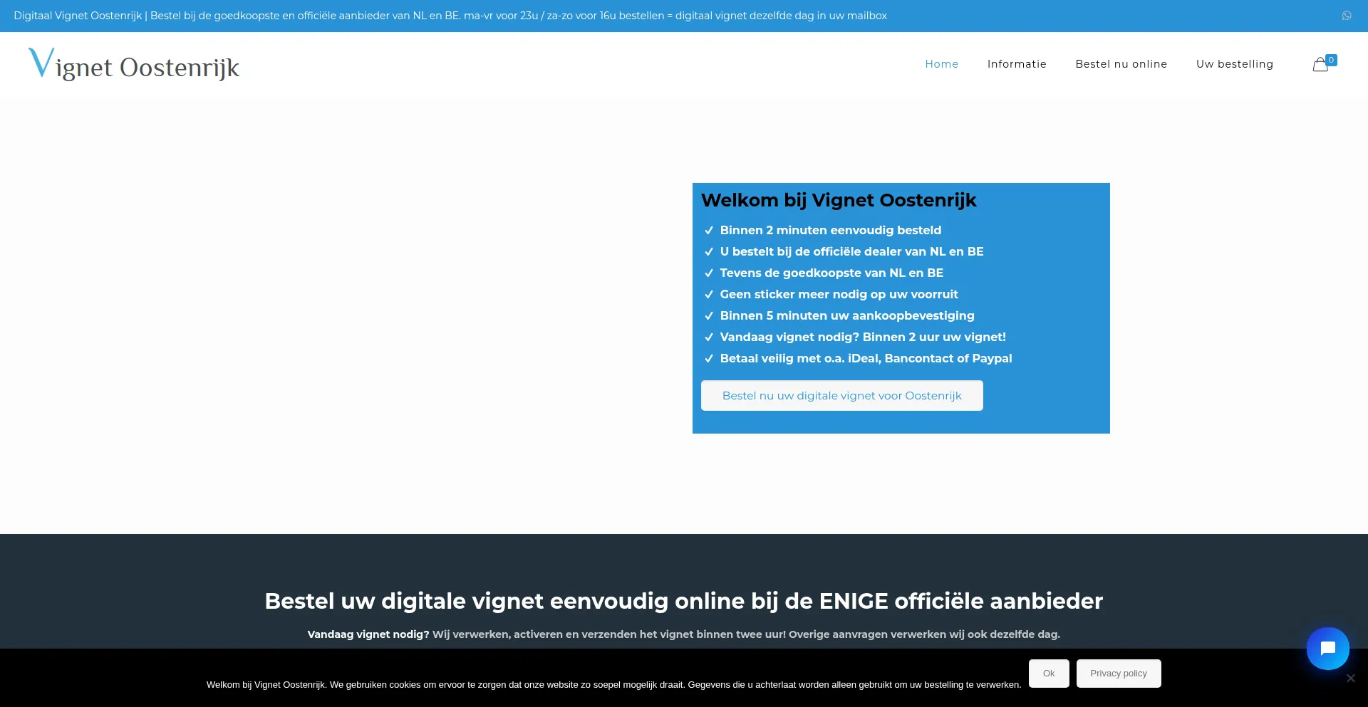 Analysis indicates that vignetoostenrijkkopen.nl operates as an e-commerce platform facilitating online transactions for goods or services. The website implements shopping cart functionality, payment processing systems, and product catalog features typical of commercial retail operations.