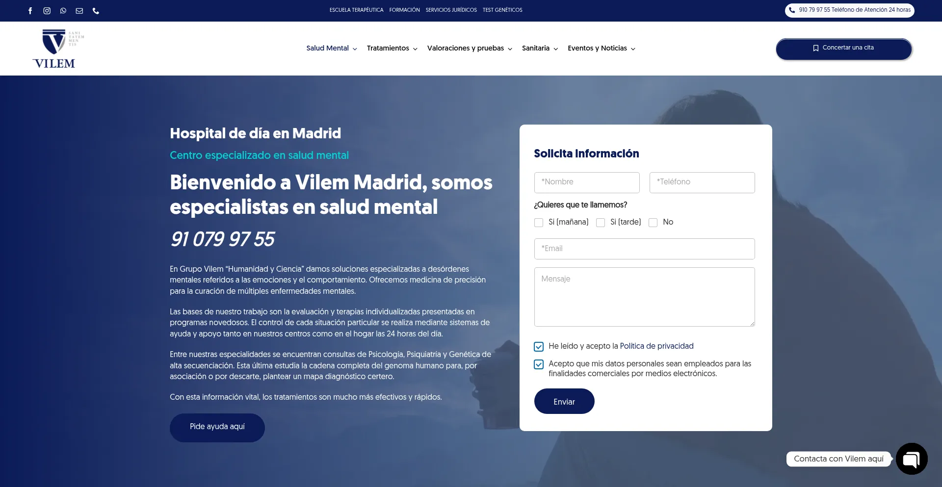 En grupo Vilem somos especialistas en salud mental. Nuestro grupo terapéutico es multidisciplinar expertos en trastornos. Contacta con nosotros.
