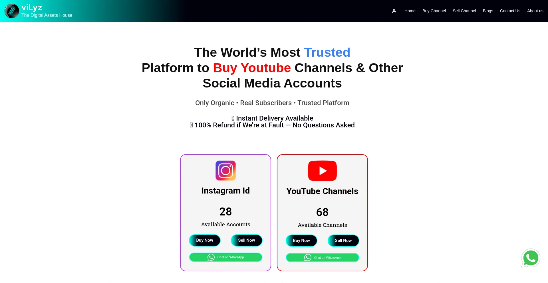 viLyz is the trusted platform to sell & buy youtube channels & other social media accounts. Safe & Secure process, Instant deal , 24/7 support