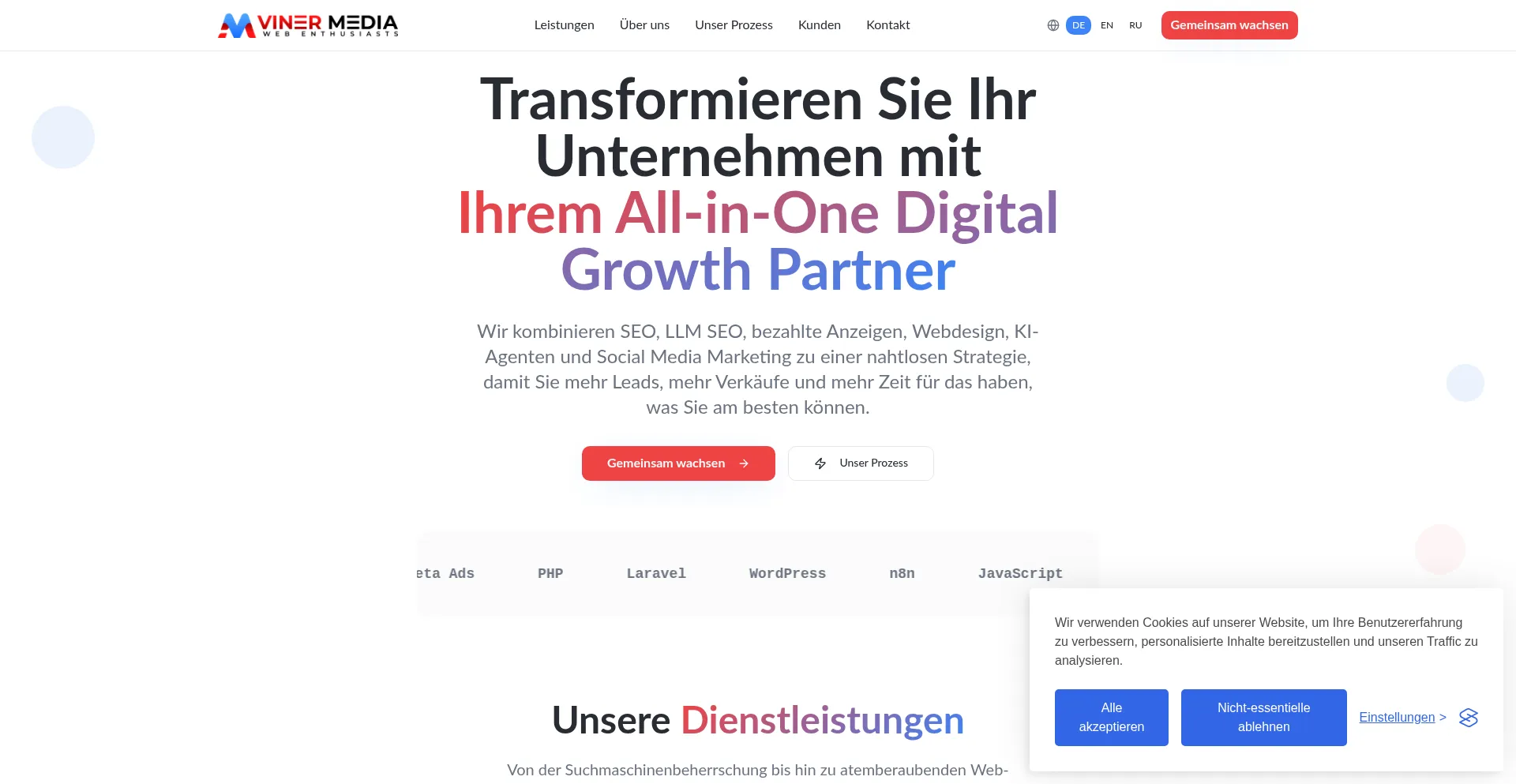 SEO, Google Ads, Meta Ads, Webdesign, KI‑Agenten u. mehr. Mehr Sichtbarkeit, Leads und Umsatz mit 360°-Strategie.