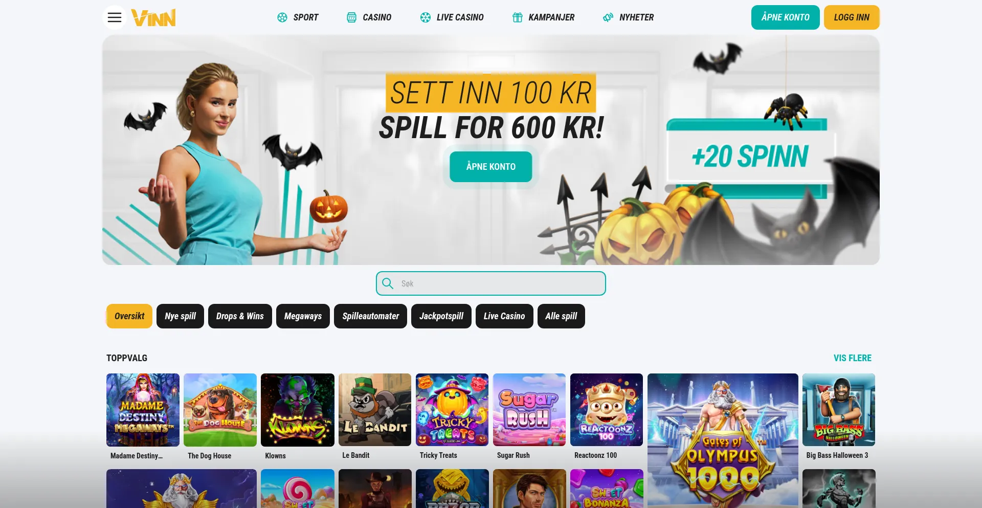 Velkommen til Vinn! Den beste i Norge på Casino, Live Casino og Odds med bonuser, tilbud og utvalg av spill og oddsmarked.