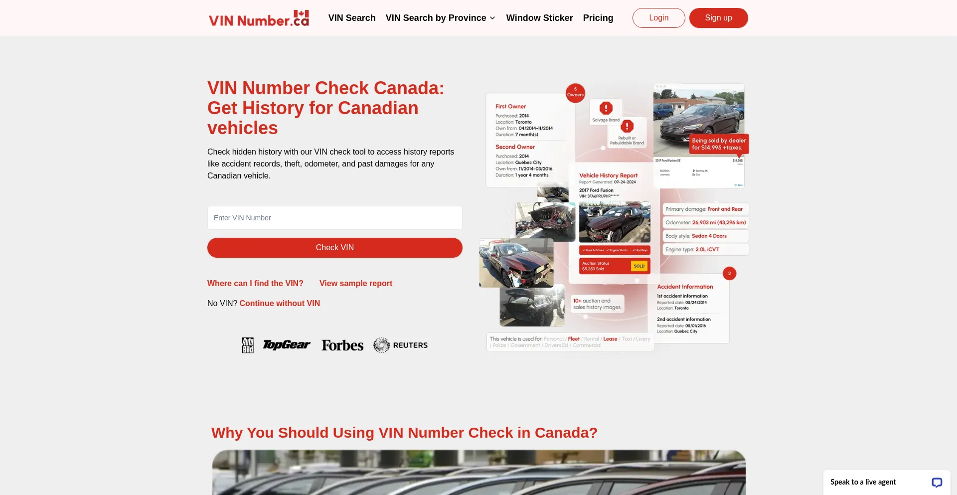 Perform a VIN number check in Canada to access free vehicle history reports and decode VINs for Canadian vehicles. Uncover accident records, lien, mileage,