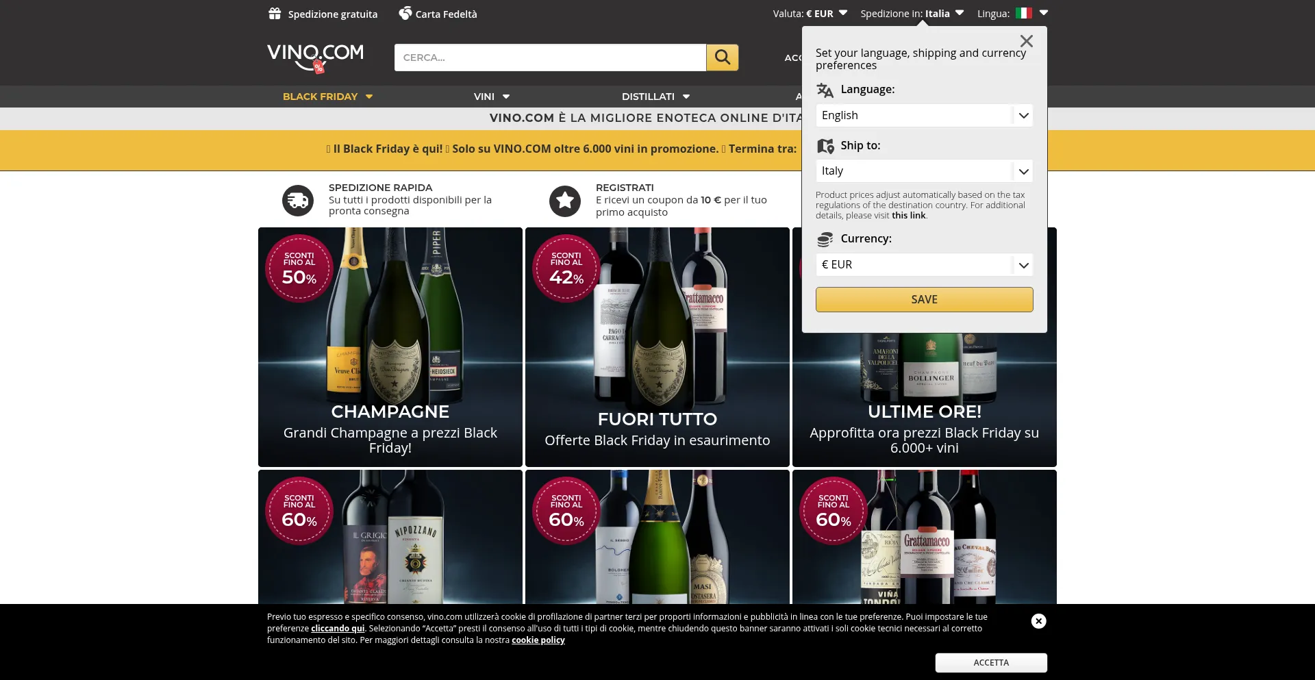 Vino.com è la migliore enoteca per la vendita di vino online! Acquista vini italiani ed esteri, champagne e distillati al miglior prezzo. Migliaia di offerte!