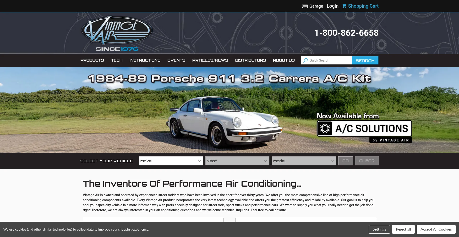 The website implements cookie consent mechanisms in compliance with privacy regulations such as GDPR or CCPA. This demonstrates that vintageair.com adheres to data protection standards and provides users with control over personal data collection practices.