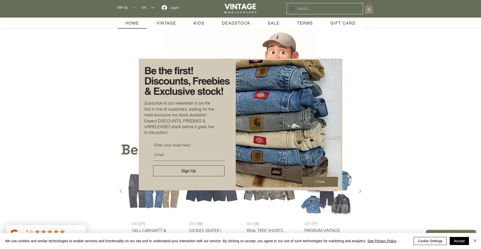 The website implements cookie consent mechanisms in compliance with privacy regulations such as GDPR or CCPA. This demonstrates that vintagewholesalers.com adheres to data protection standards and provides users with control over personal data collection practices.