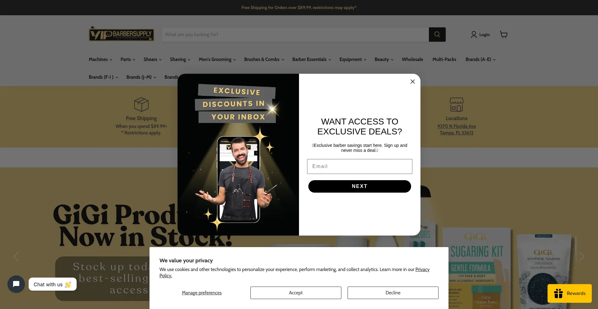 The website implements cookie consent mechanisms in compliance with privacy regulations such as GDPR or CCPA. This demonstrates that vipbarbersupply.com adheres to data protection standards and provides users with control over personal data collection practices.