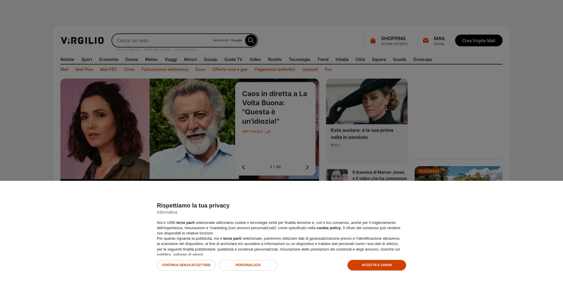 The website implements cookie consent mechanisms in compliance with privacy regulations such as GDPR or CCPA. This demonstrates that virgilio.it adheres to data protection standards and provides users with control over personal data collection practices.