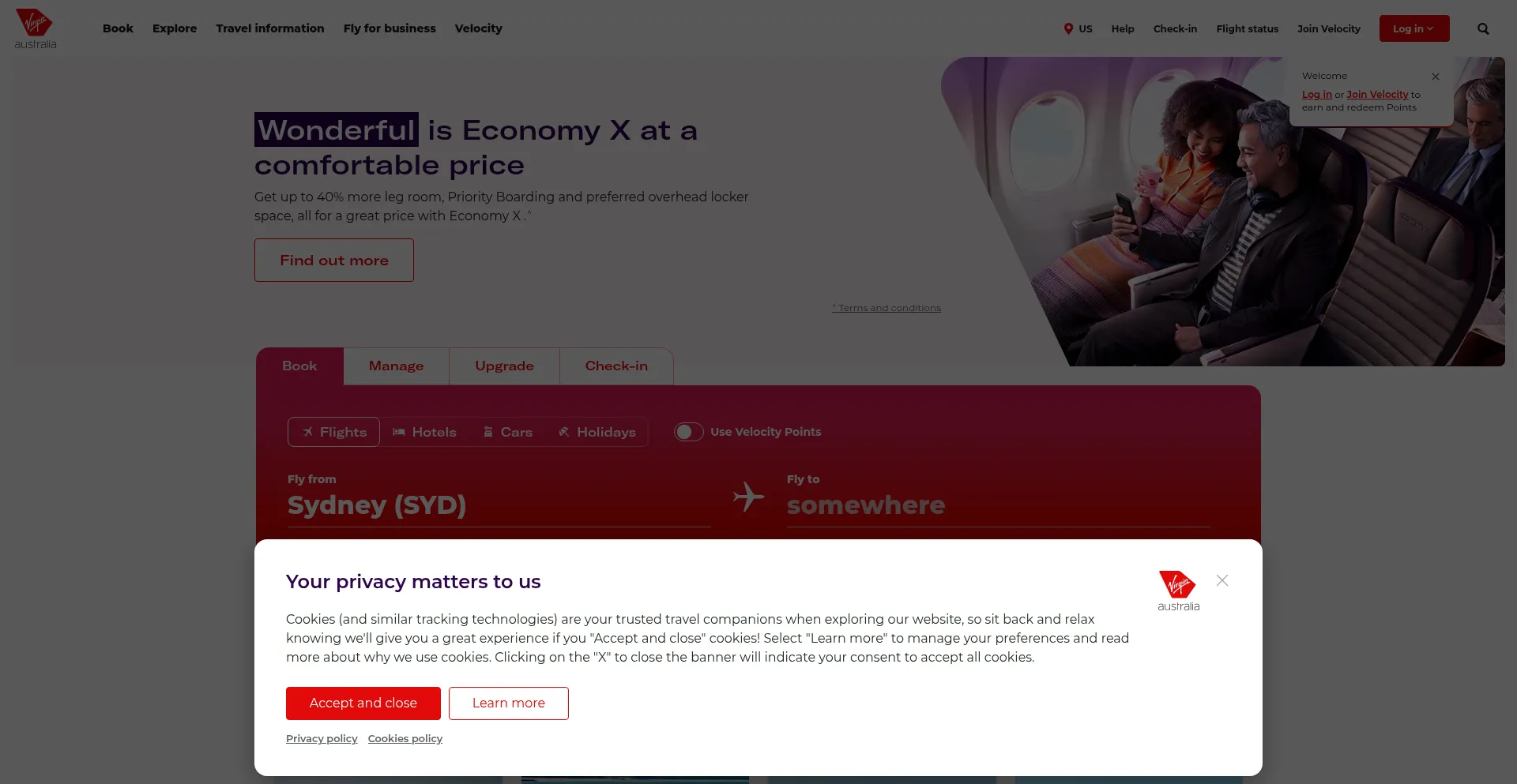The website implements cookie consent mechanisms in compliance with privacy regulations such as GDPR or CCPA. This demonstrates that virginaustralia.com adheres to data protection standards and provides users with control over personal data collection practices.