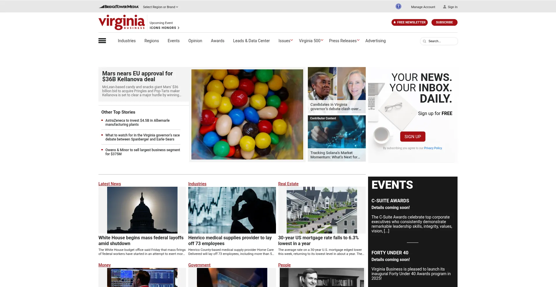 The virginiabusiness.com website implements data collection forms requesting personal information including names, email addresses, phone numbers, or other sensitive details. Users should verify the legitimacy of it and review privacy policies before submitting personal data.
