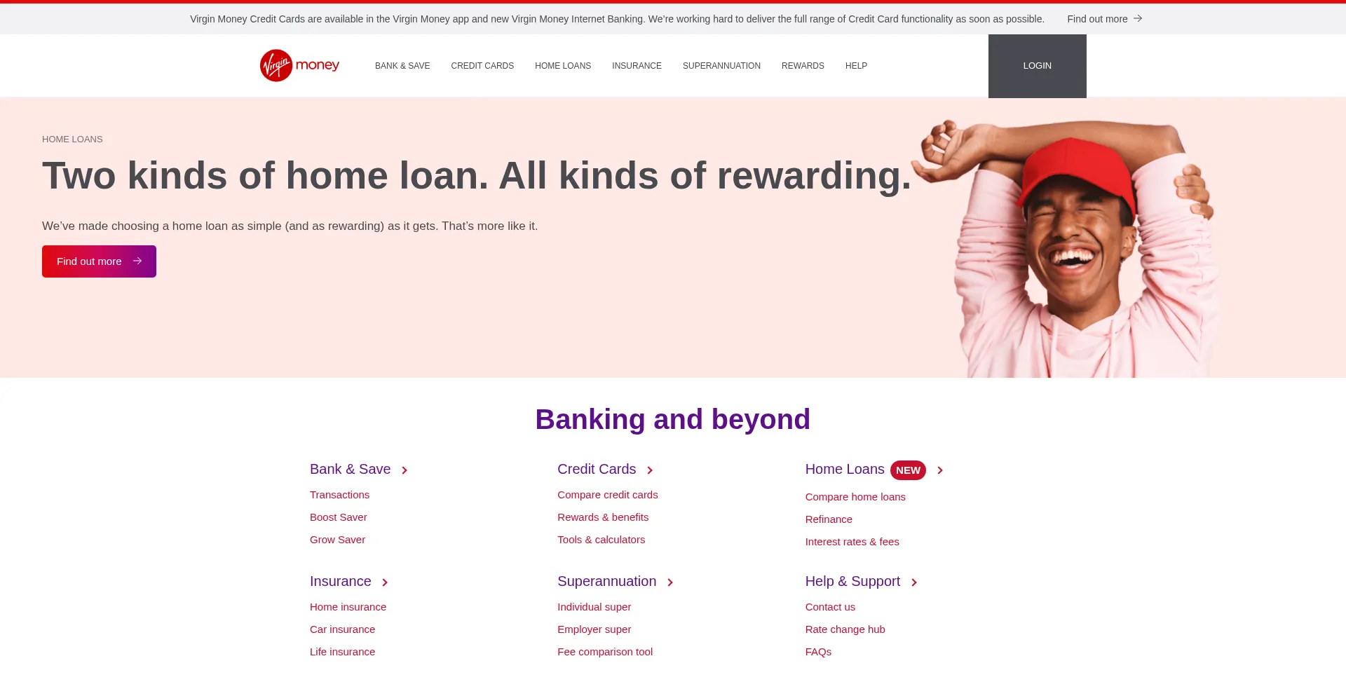 Virgin Money Australia offers banking services, credit cards, home loans, super and insurance. Start getting rewarded for how you bank, save & spend today.