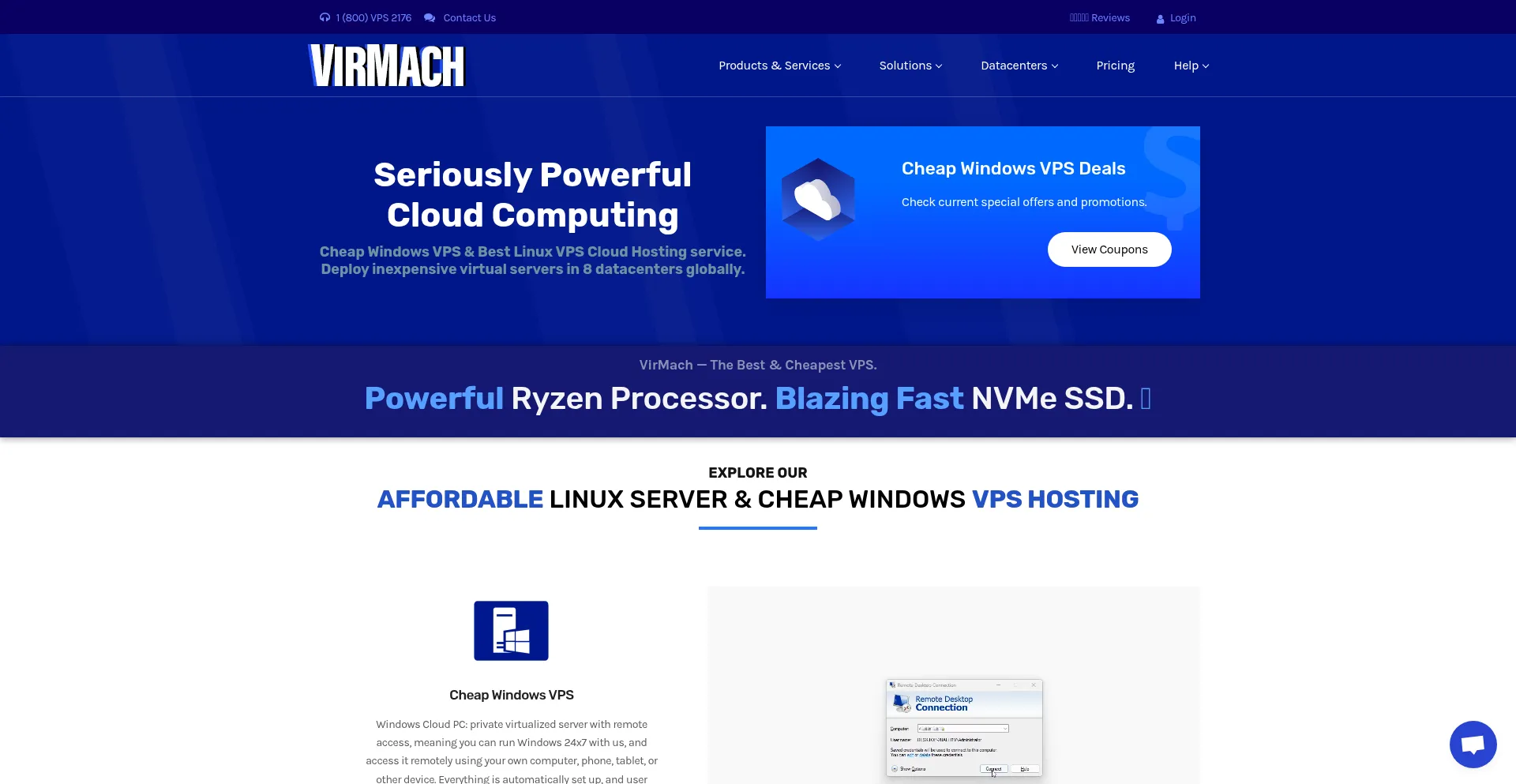 The best affordable Windows VPS and cheap VPS (virtual machine cloud hosting) for a few dollars, in 14 global datacenters. Low-cost cloud VPS.