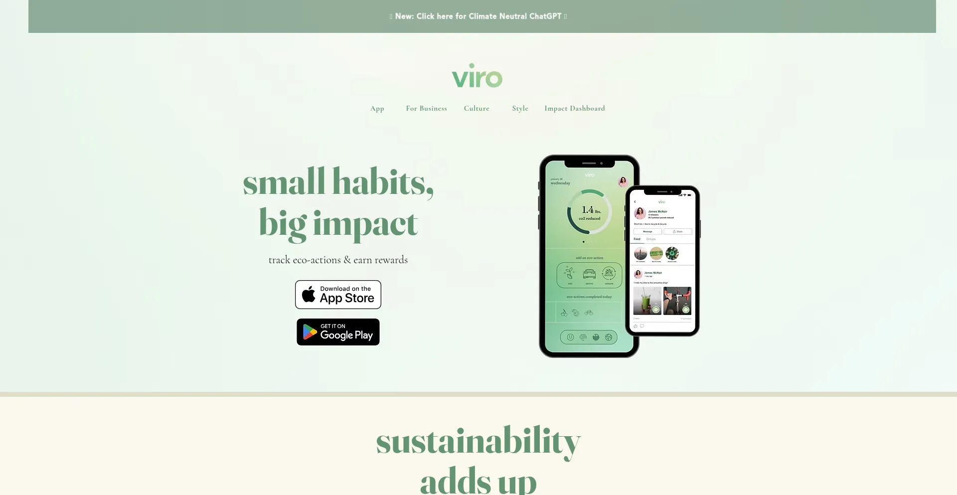 Track the impact of your environmental action with Viro app. Live sustainably and earn rewards. Measure and reduce your daily carbon footprint.
