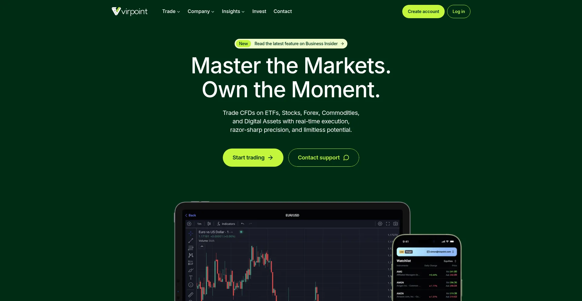 Master the markets with VirPoint. Trade CFDs on stocks, ETFs, forex, commodities, and digital assets with confidence and control.