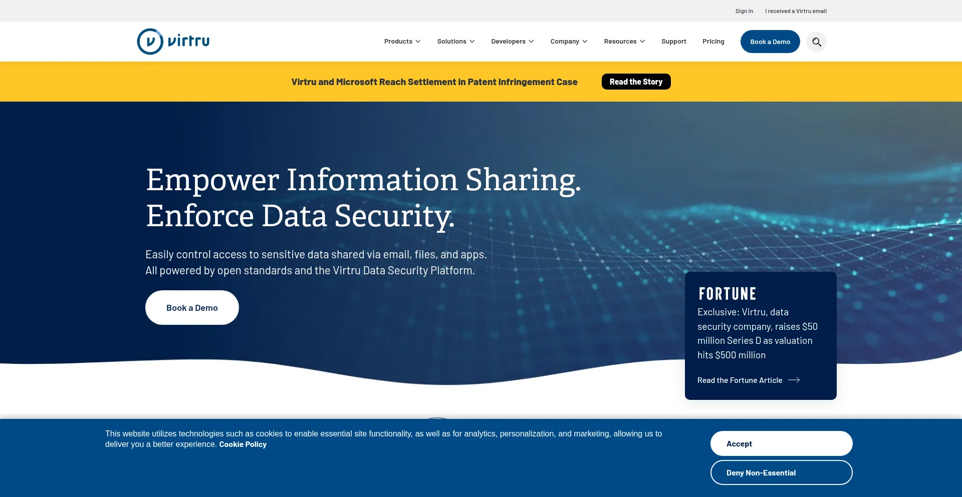 The website implements cookie consent mechanisms in compliance with privacy regulations such as GDPR or CCPA. This demonstrates that virtru.com adheres to data protection standards and provides users with control over personal data collection practices.