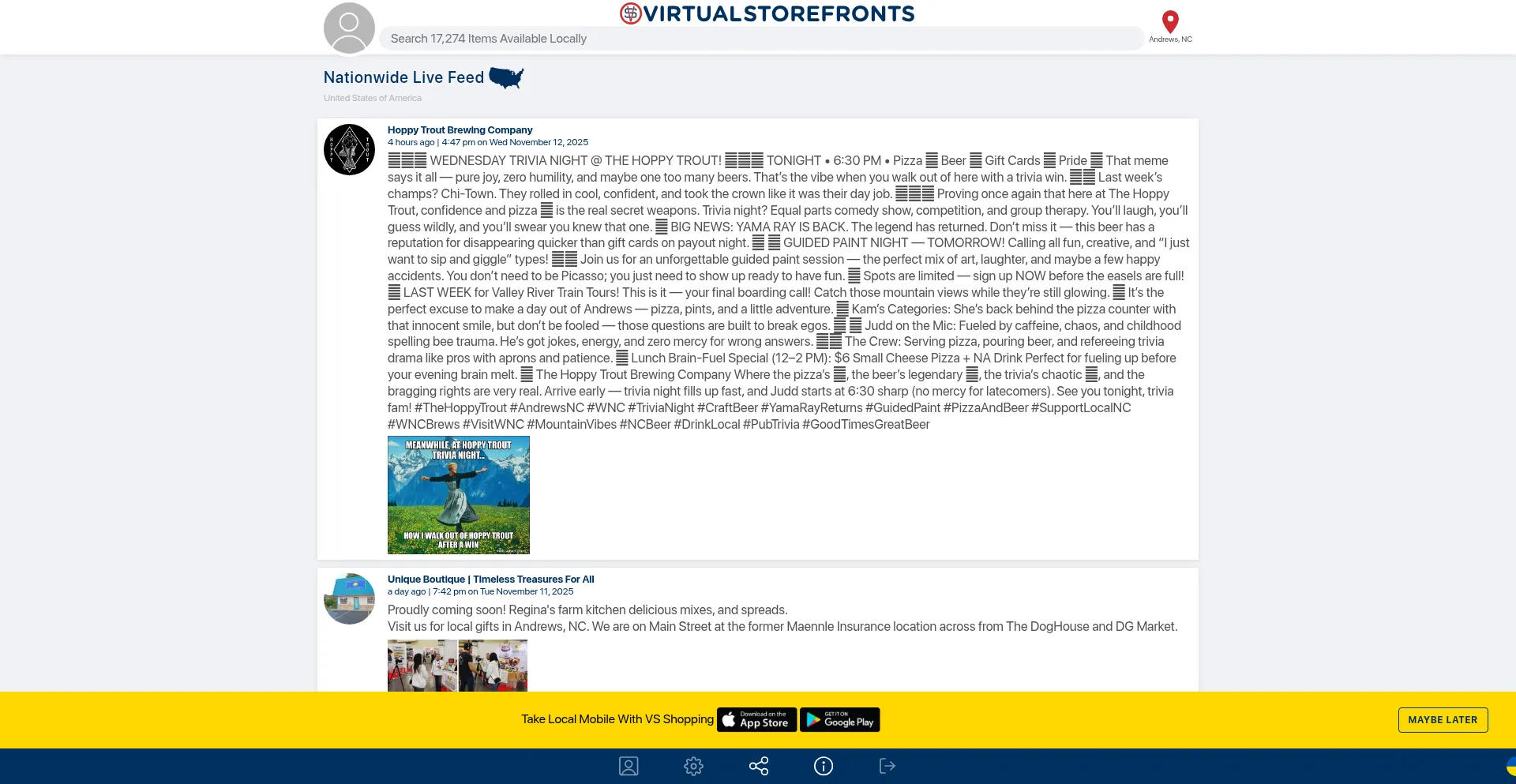 The virtualstorefronts.com website offers a mobile application for Android devices, indicating expanded platform presence beyond web-based services.