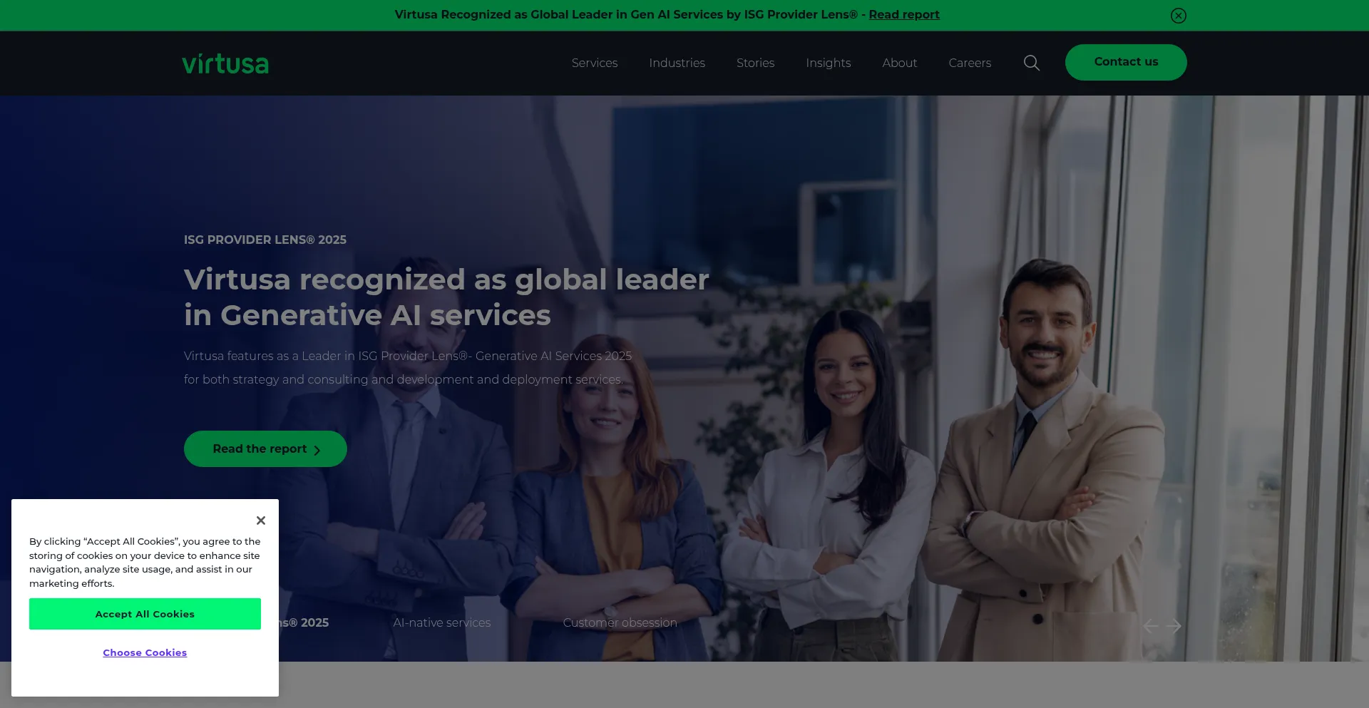 The website implements cookie consent mechanisms in compliance with privacy regulations such as GDPR or CCPA. This demonstrates that virtusa.com adheres to data protection standards and provides users with control over personal data collection practices.