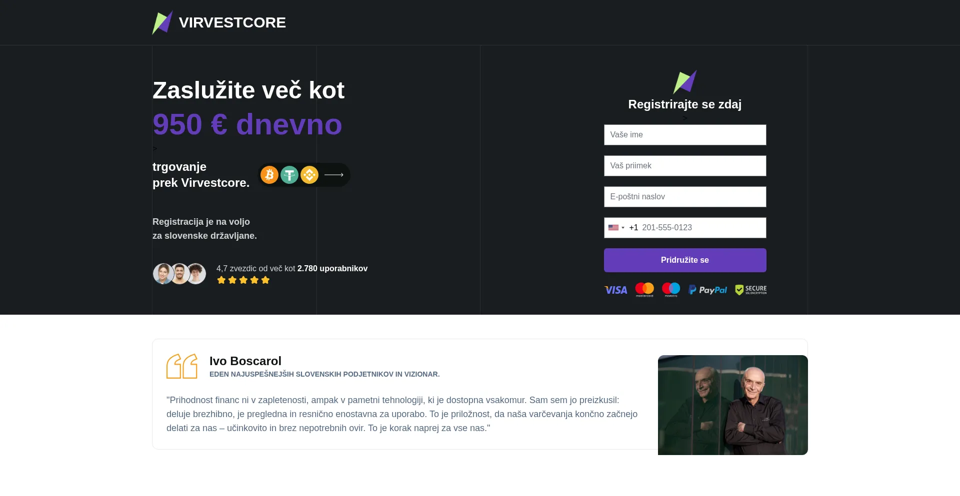 Virvestcore.com operates as a suspicious website with multiple red flags that compromise its trustworthiness and user safety. The platform exhibits concerning characteristics including misleading information, questionable operational practices, or potential malware distribution that poses significant risks to visitors.