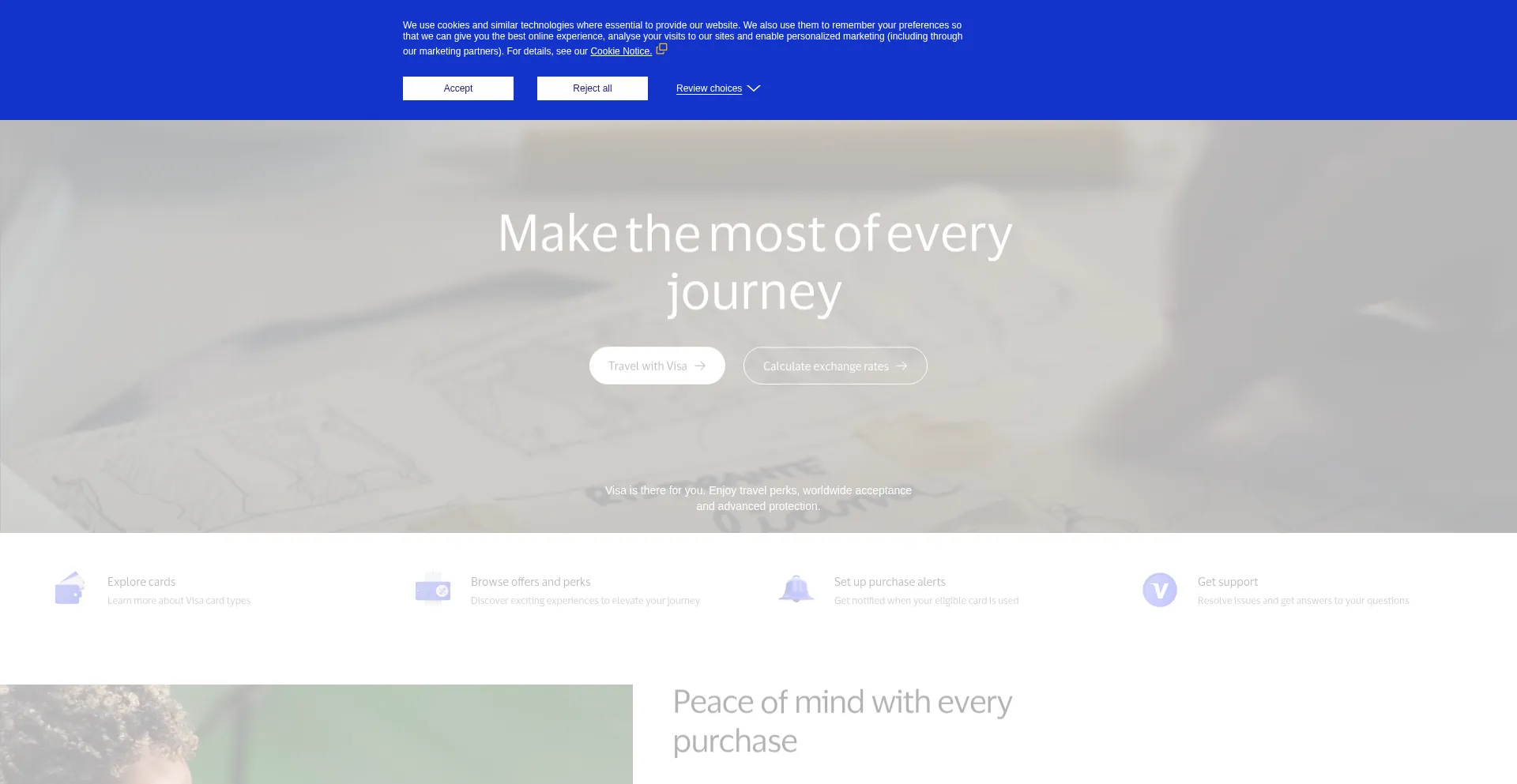 The website implements cookie consent mechanisms in compliance with privacy regulations such as GDPR or CCPA. This demonstrates that visa.com adheres to data protection standards and provides users with control over personal data collection practices.