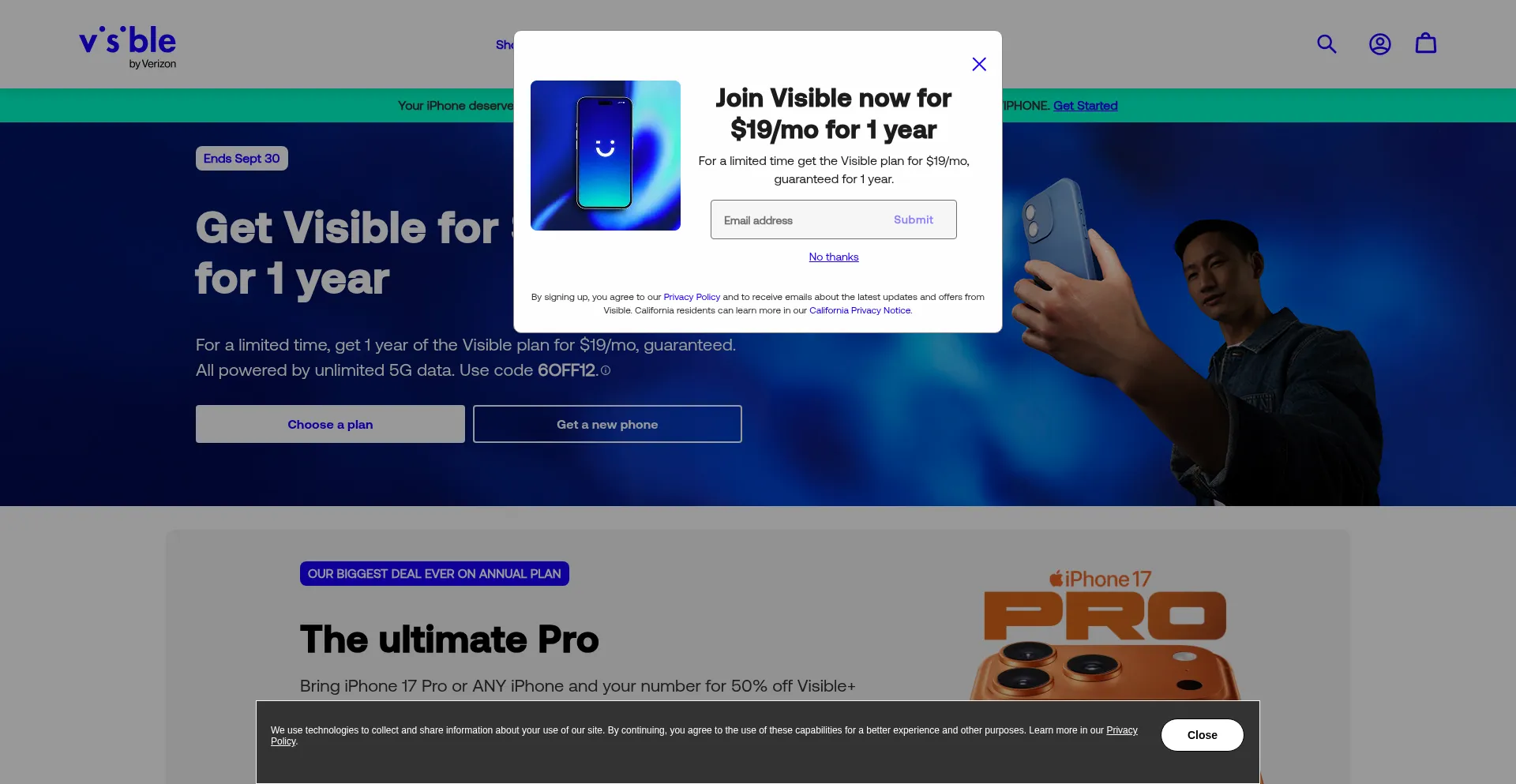 The visible.com website implements data collection forms that may request personal information including names, email addresses, phone numbers, or other sensitive details. Users should verify the legitimacy of it and review privacy policies before submitting personal data.