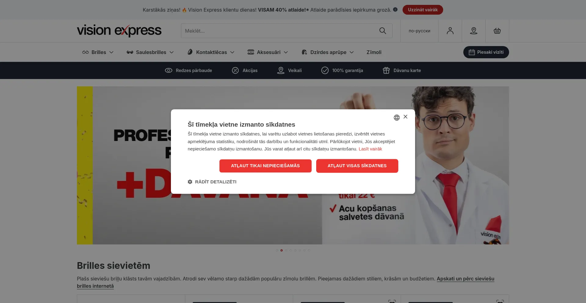The website implements cookie consent mechanisms in compliance with privacy regulations such as GDPR or CCPA. This demonstrates that visionexpress.lv adheres to data protection standards and provides users with control over personal data collection practices.