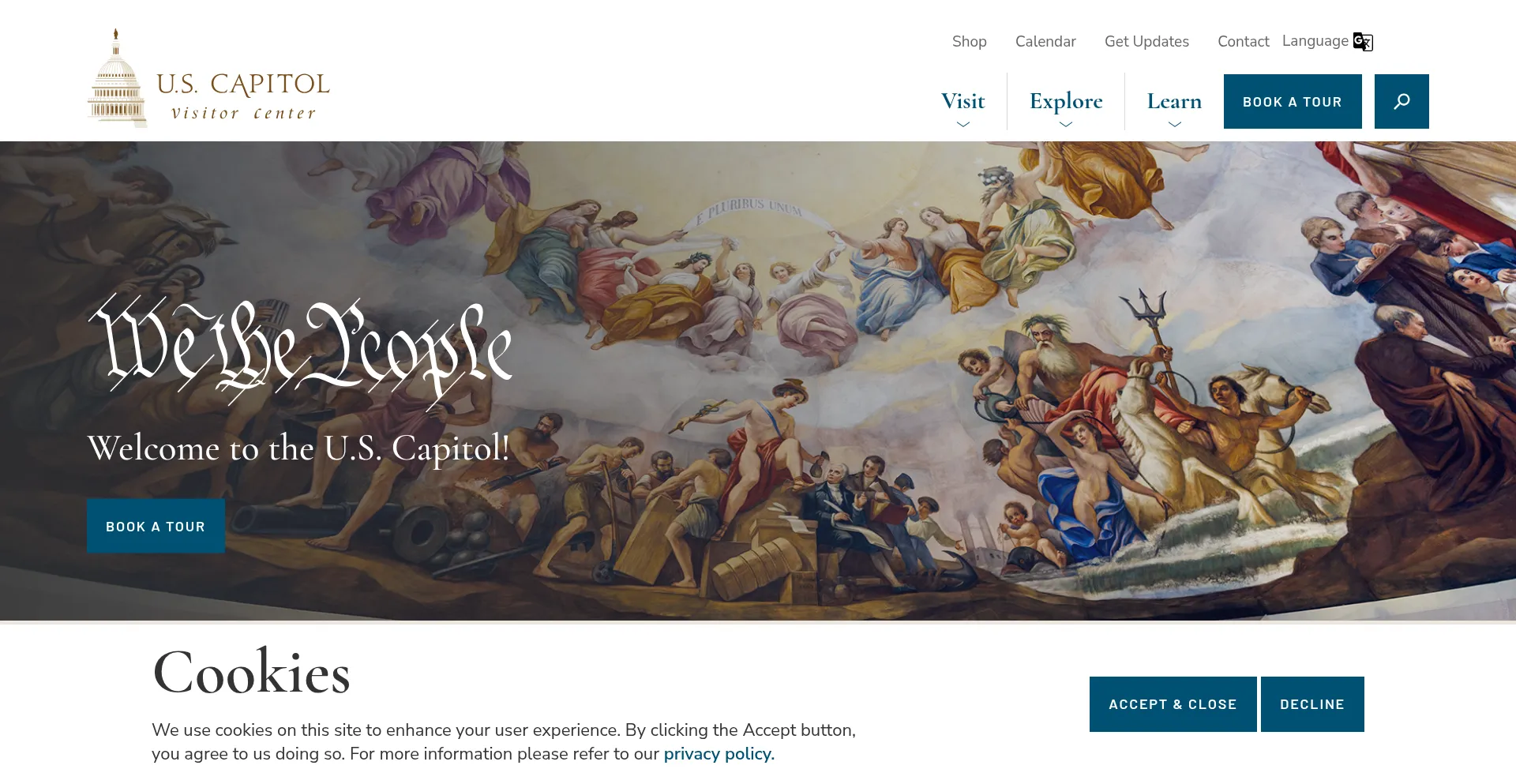 The website implements cookie consent mechanisms in compliance with privacy regulations such as GDPR or CCPA. This demonstrates that visitthecapitol.gov adheres to data protection standards and provides users with control over personal data collection practices.