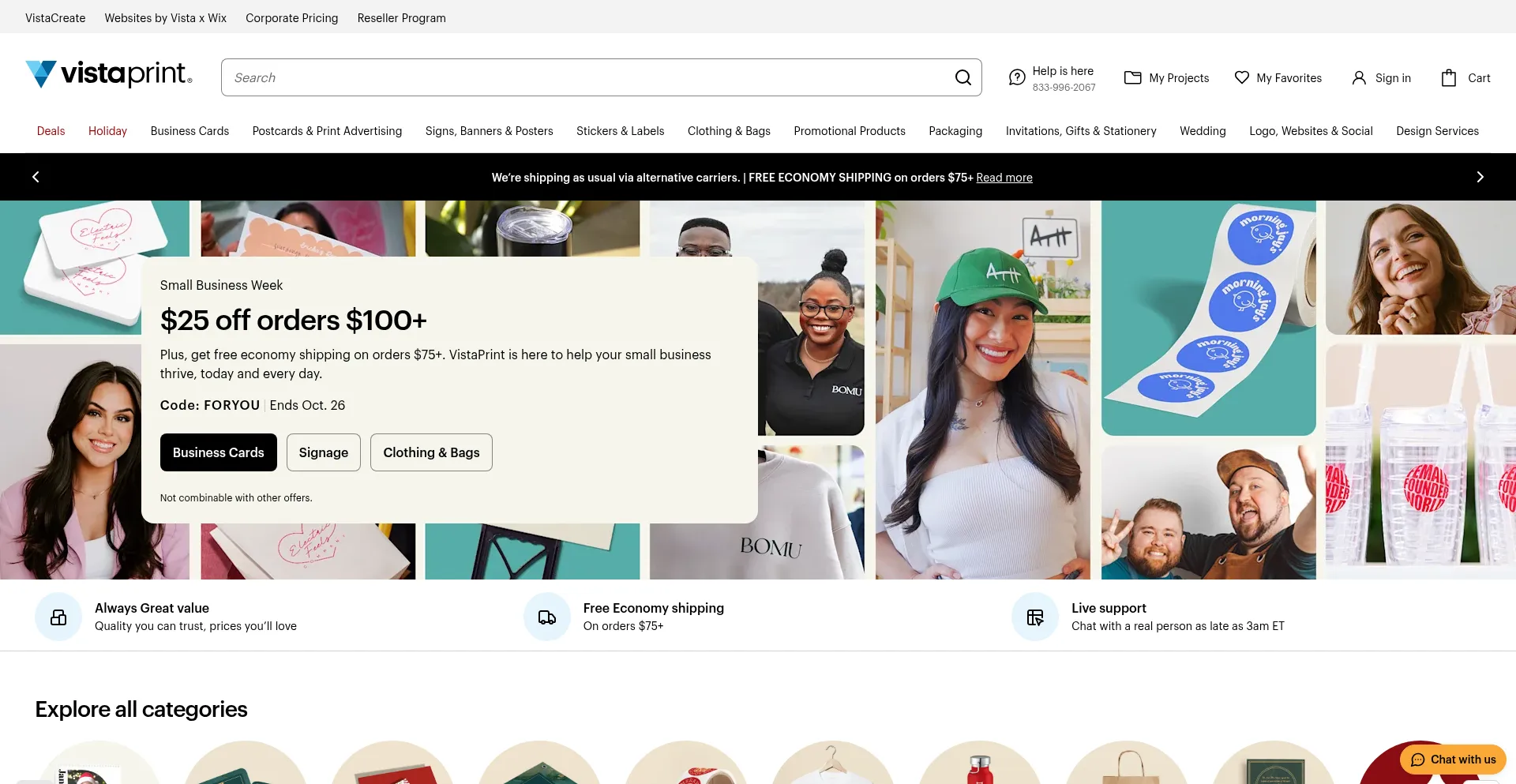 VistaPrint online printing services help you create and order the best custom products: marketing materials, business cards, signage, promotional products, custom gifts, packagi...