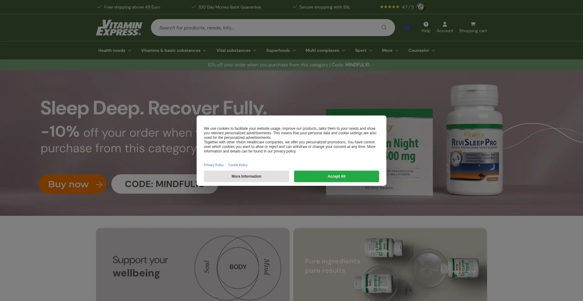 The website implements cookie consent mechanisms in compliance with privacy regulations such as GDPR or CCPA. This demonstrates that vitaminexpress.org adheres to data protection standards and provides users with control over personal data collection practices.