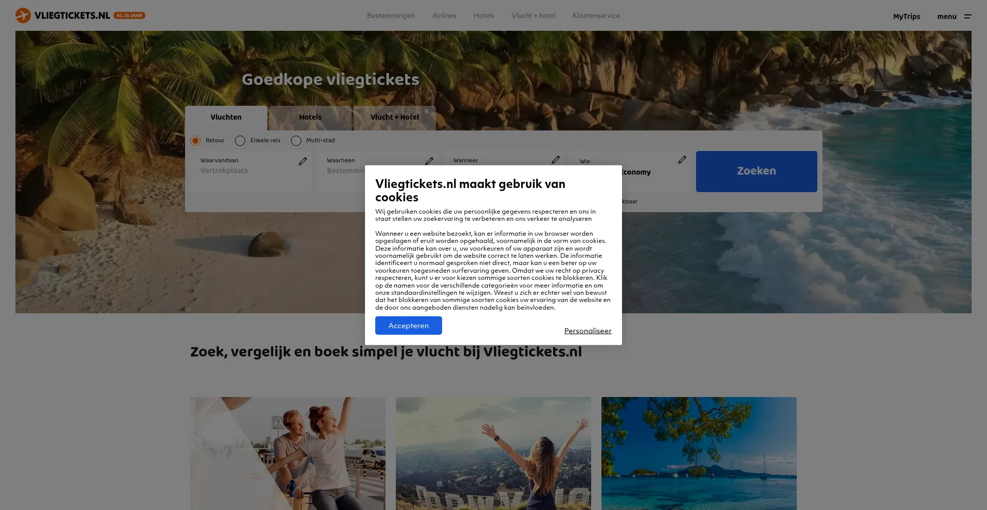 The website implements cookie consent mechanisms in compliance with privacy regulations such as GDPR or CCPA. This demonstrates that vliegtickets.nl adheres to data protection standards and provides users with control over personal data collection practices.