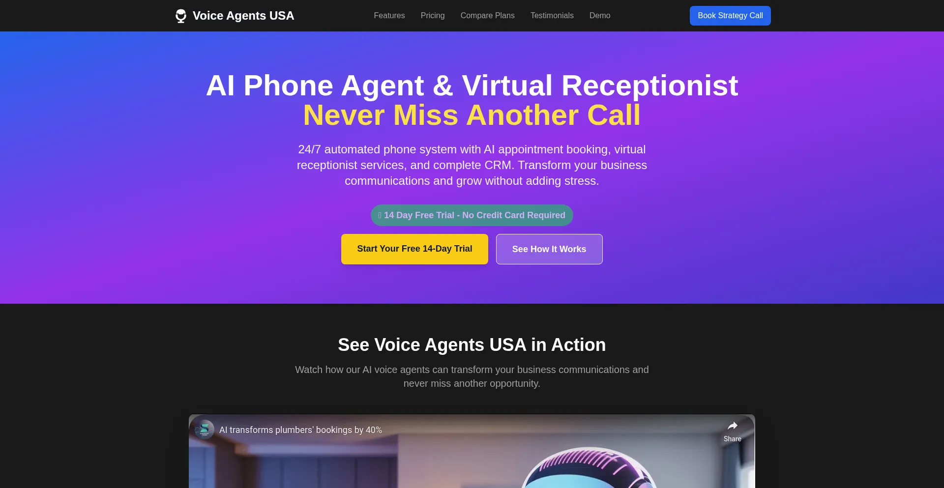 AI Phone Agent & Virtual Receptionist | Voice Agents USA - 24/7 Automated Phone System