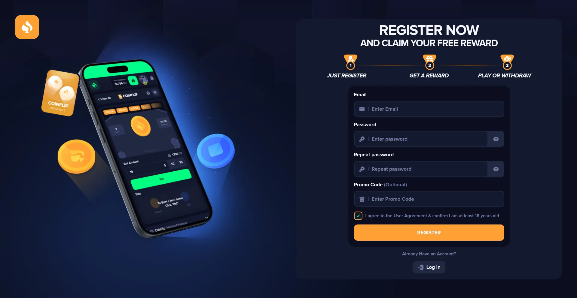18+, Cryptocurrency, Registration Form, Casino, Cloudflare Browser Insights, Facebook Integration, Young Domain