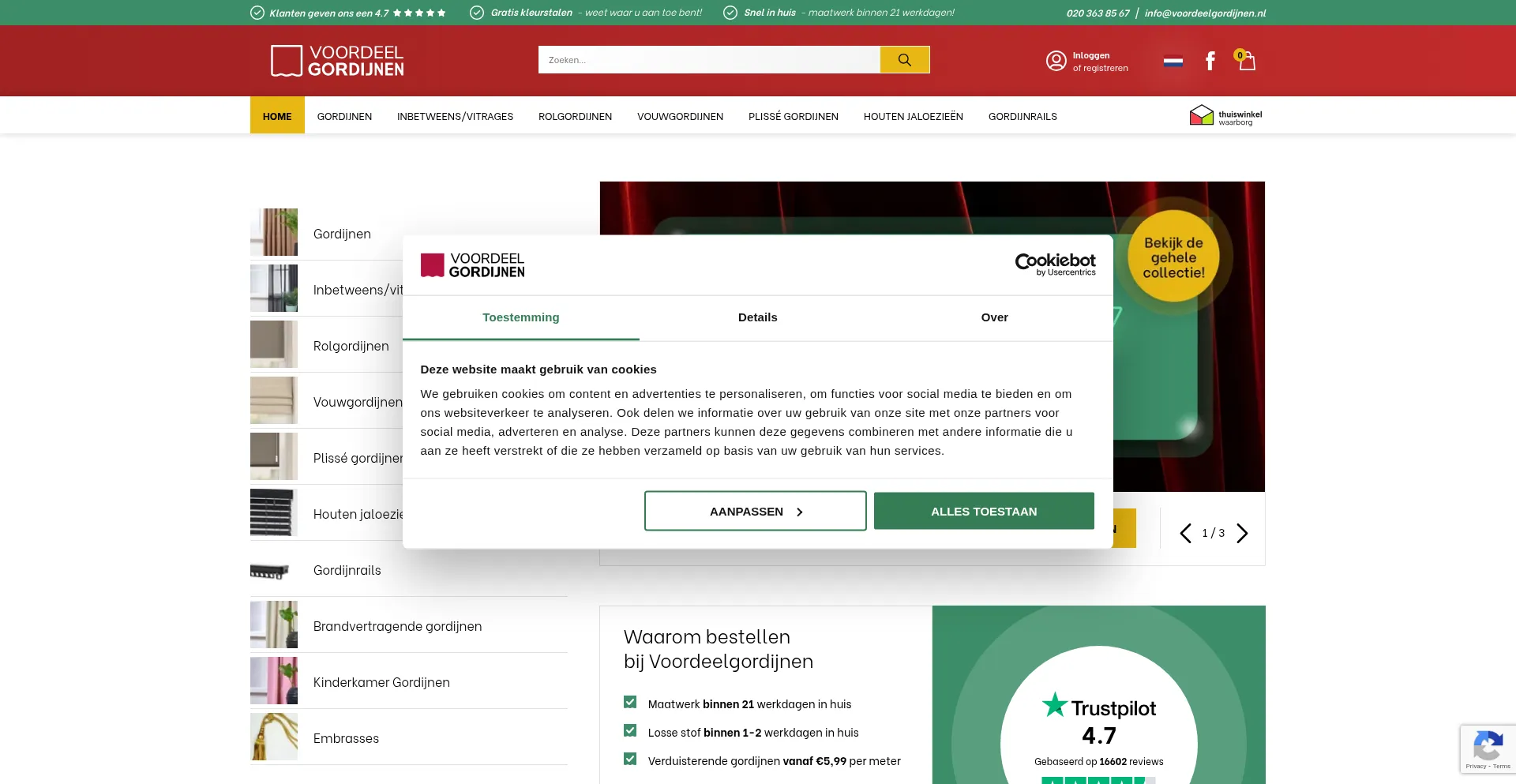 The website implements cookie consent mechanisms in compliance with privacy regulations such as GDPR or CCPA. This demonstrates that voordeelgordijnen.nl adheres to data protection standards and provides users with control over personal data collection practices.