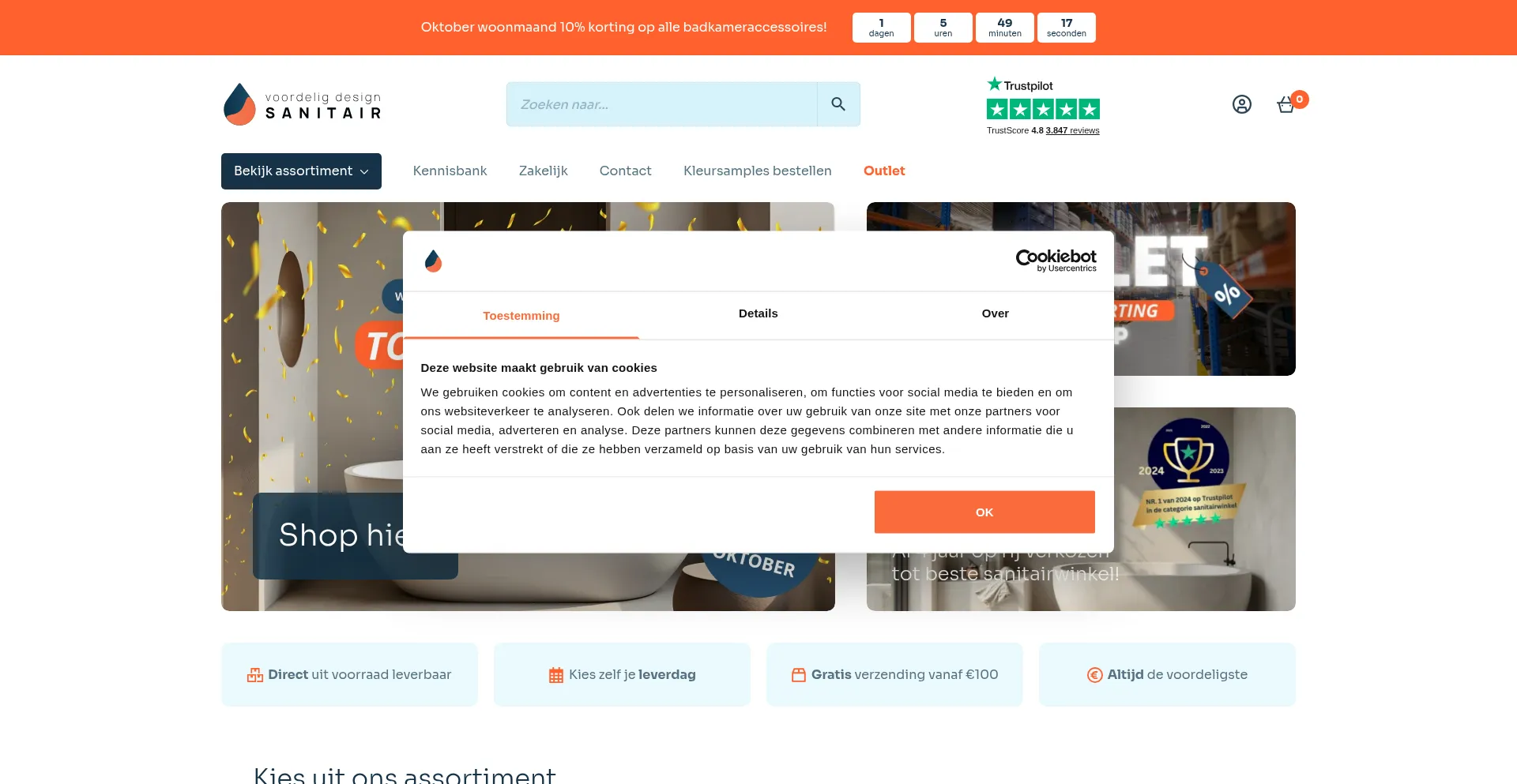 The website implements cookie consent mechanisms in compliance with privacy regulations such as GDPR or CCPA. This demonstrates that voordeligdesignsanitair.nl adheres to data protection standards and provides users with control over personal data collection practices.