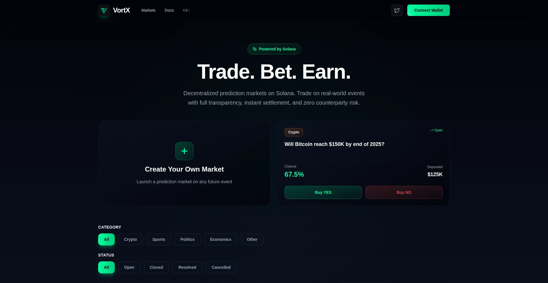 Decentralized prediction markets on Solana.