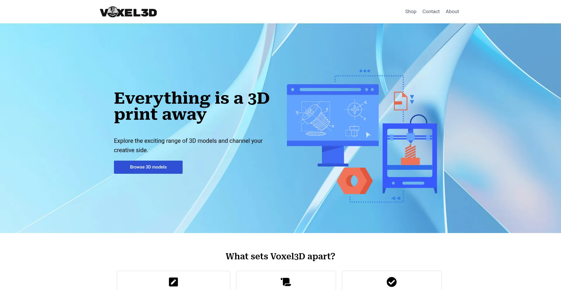 Analysis indicates that voxel3d.store operates as an e-commerce platform facilitating online transactions for goods or services. The website implements shopping cart functionality, payment processing systems, and product catalog features typical of commercial retail operations.