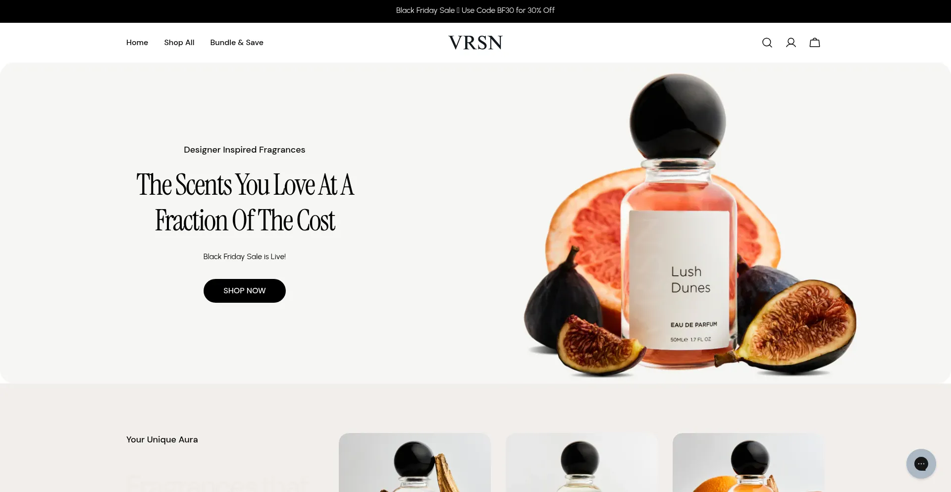 The website leverages popular product names and brands to attract traffic and generate user interest. These products may be offered through promotional campaigns or discount strategies designed to increase visitor engagement and conversion rates for vrsnscents.com.