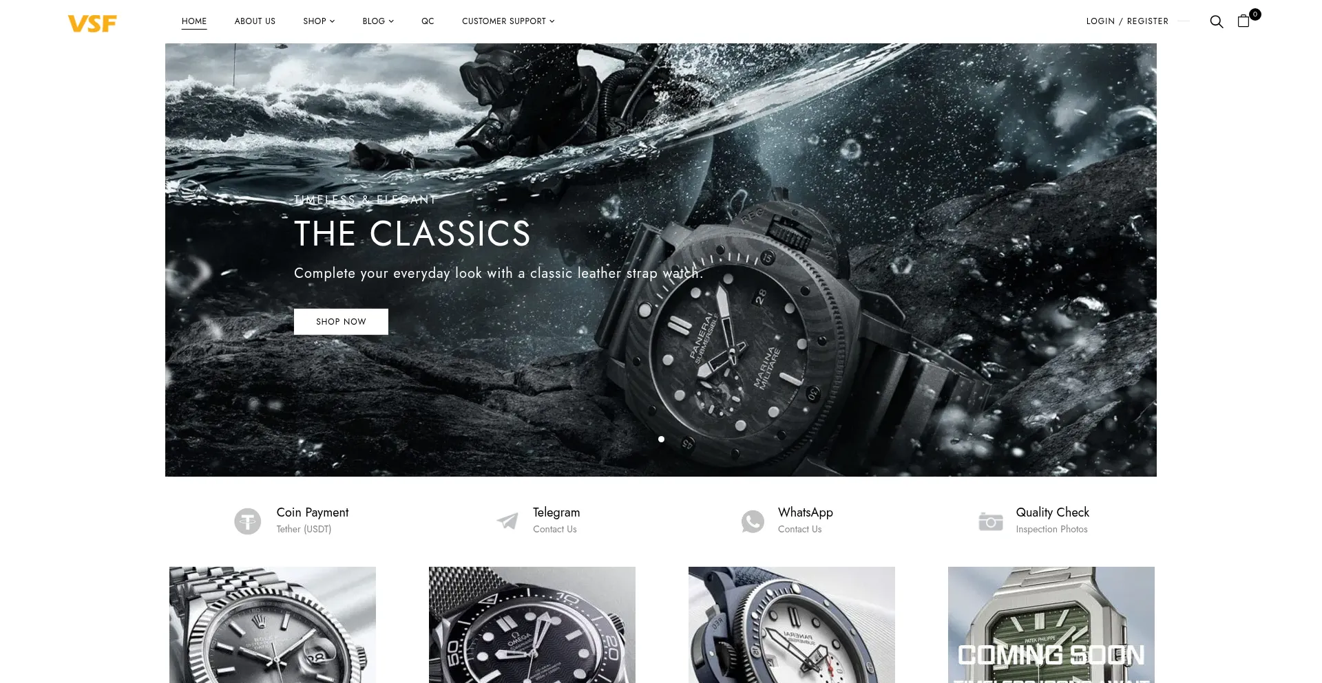 TIMELESS & ELEGANT THE CLASSICS Complete your everyday look with a classic leather strap watch. SHOP NOW Coin Payment Tether (USDT) Telegram Contact Us