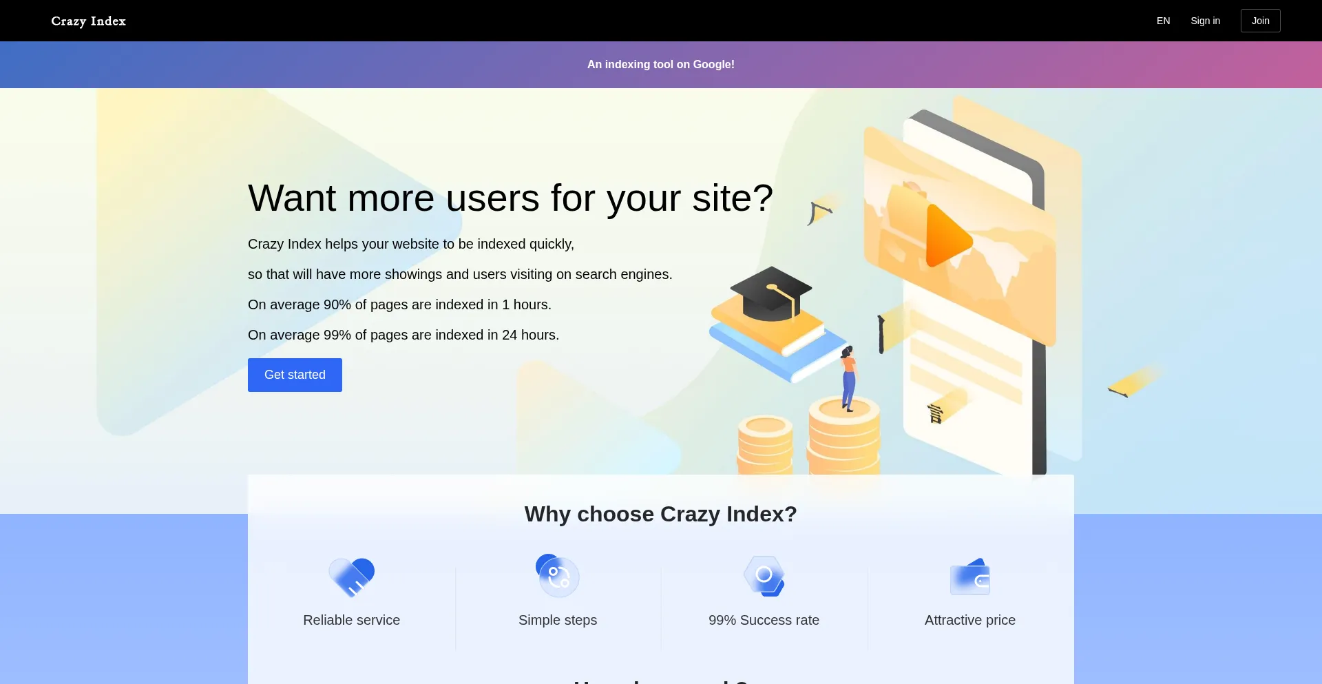 Google indexing & Link Indexing Tool & Pushing Service - Crazy Index