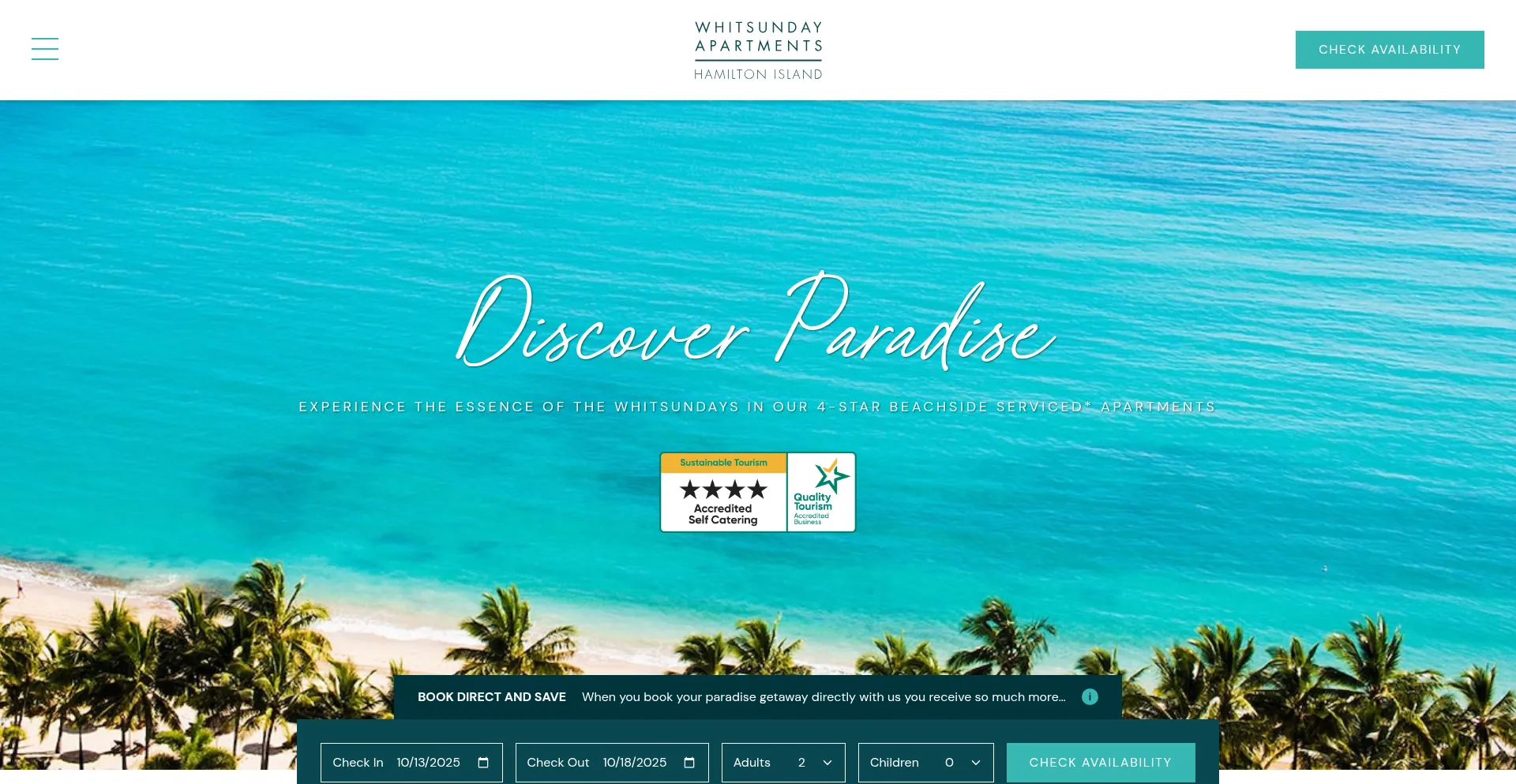 Whitsunday Apartments, located on the resort side of Hamilton Island, feature one bedroom apartments overlooking Catseye Beach, ideal for couples and families.