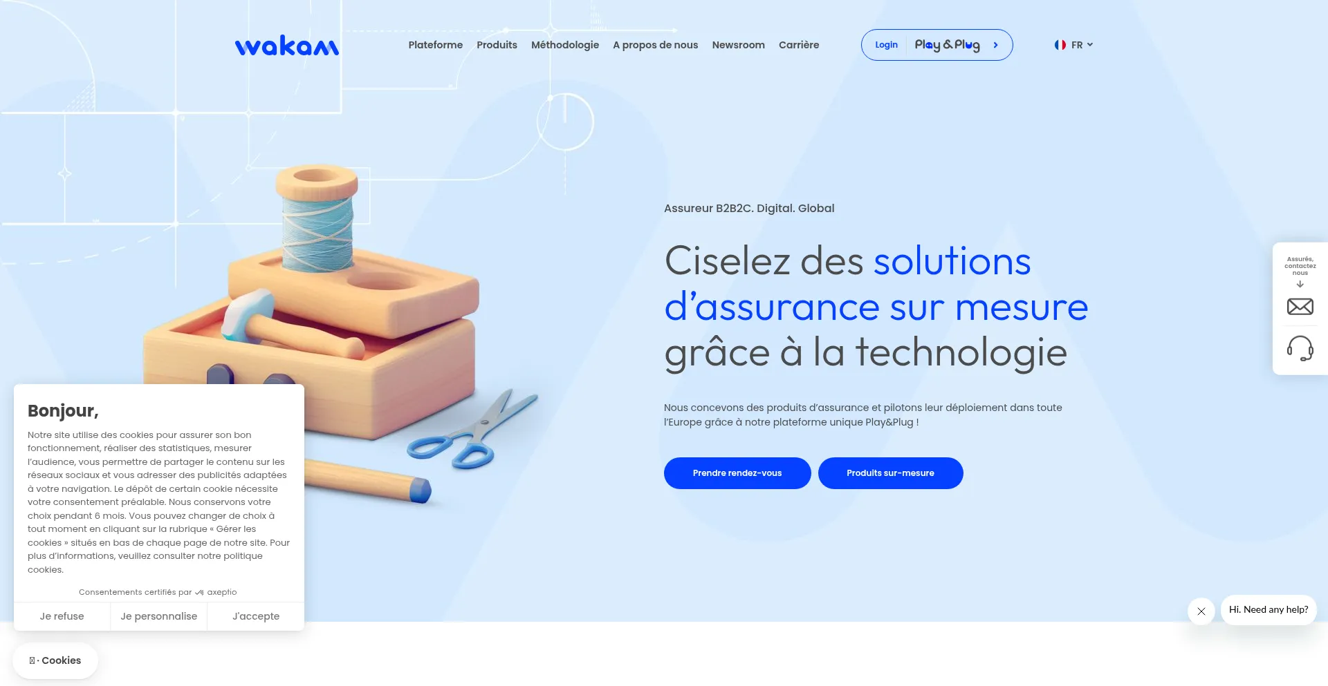 The wakam.com website uses Google Tag Manager to add and update tracking tags on its website.